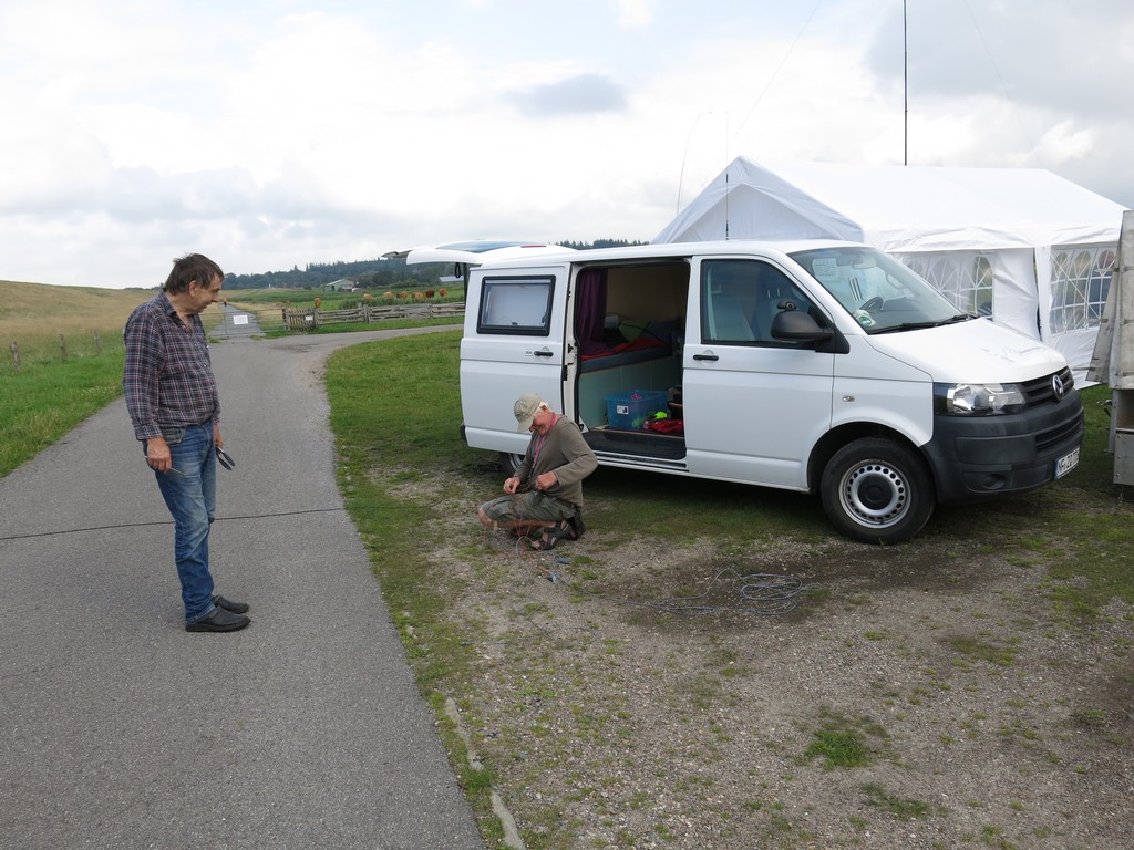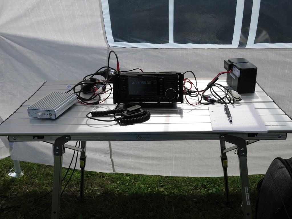 Regenschauer nach dem Zeltaufbau herrschte schönstes Wetter. Ursprünglich war lediglich ein Beisammensein sowie ein Testaufbau der mitgebrachten Stationen geplant, um zu sehen, wo noch Defizite für einen größeren Fieldday liegen. Aus diesem Grund wurde im Vorfeld keine große „Werbung“ gemacht und nur die unmittelbaren Nachbarortsverbände informiert.