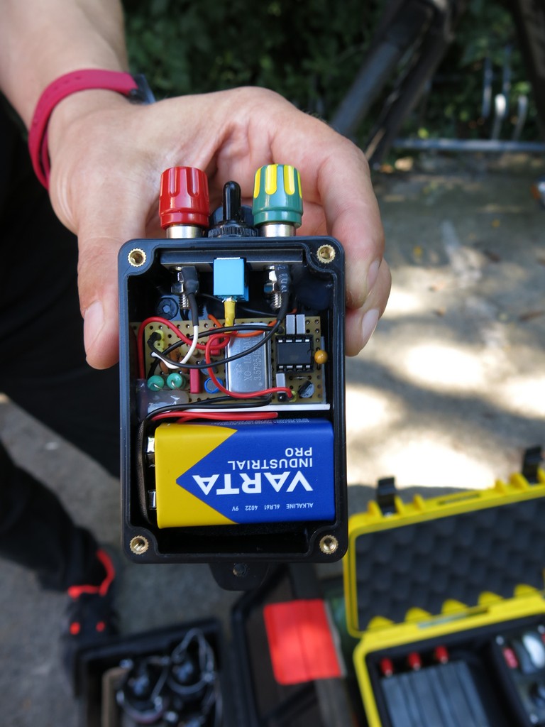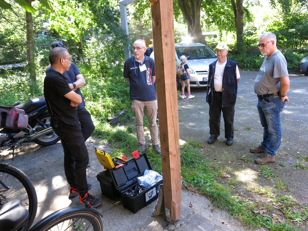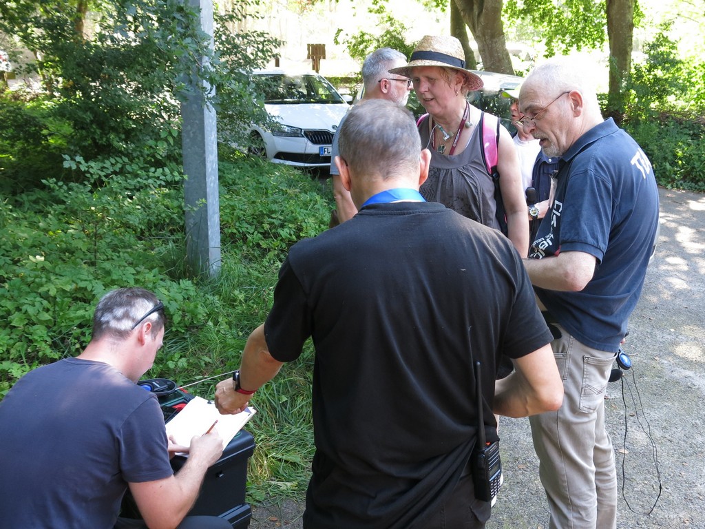 Viele Teilnehmer hielten das erste Mal überhaupt einen Peilempfänger in der Hand, und so wurde jeder startenden Gruppe ein erfahrener Funkamateur zur Seite gestellt.