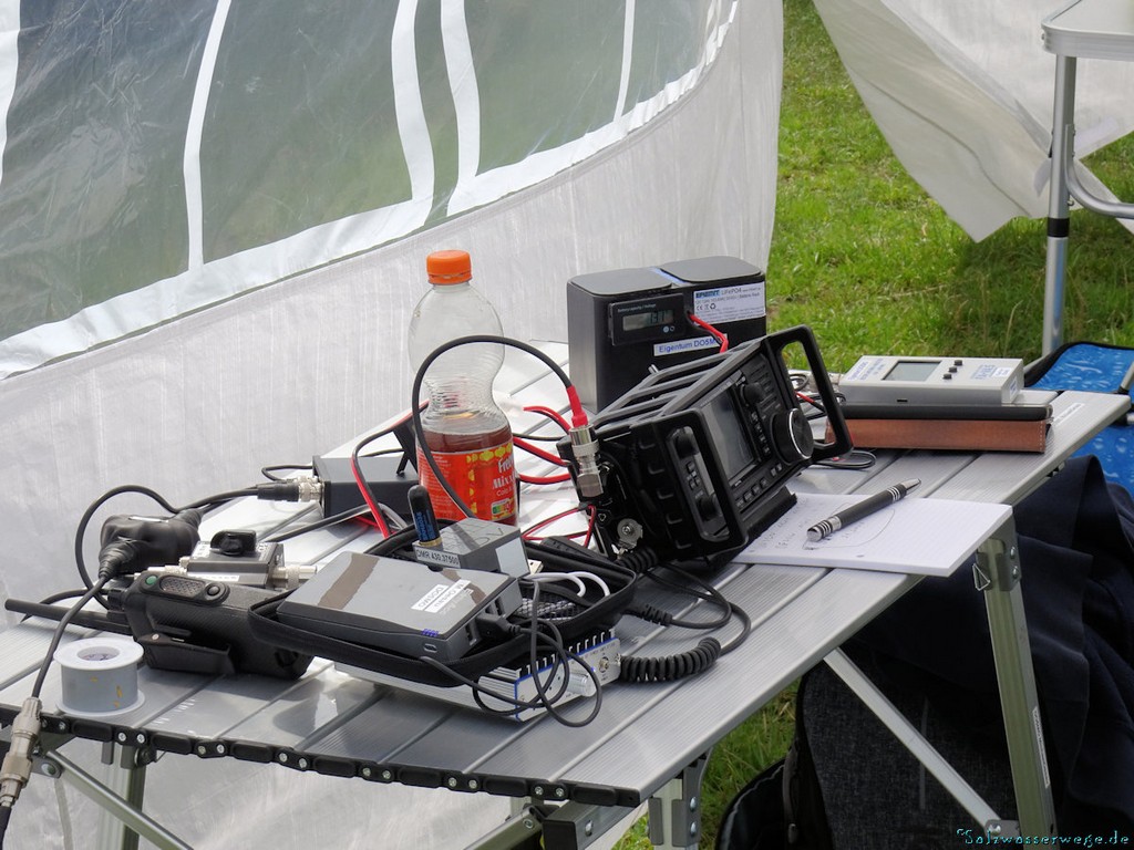 Umso größer war die Freude als – verstärkt durch sechs Gäste des OV Heide (M17) – insgesamt 13 Funkamateure Ihre Antennen und Geräte für Kurzwelle und UKW aufbauten, das Fieldday-Gelände mit HF verseuchten und viele QSOs abwickelten. Auch der erstmals zum Einsatz gekommene „Step-Up“-Spannungswandler, der selbst bei einer Batteriespannung von unter 9 Volt noch sichere 13,8 Volt bei 18 Ampere am Ausgang bereitstellt, hatte seine Feuerprobe bestanden. Wer Interesse an diesem Projekt von Wolfgang DK7UY hat, kann sich gerne unter mail'at'dk7uy.de melden, um eine Projektbeschreibung zu erhalten.