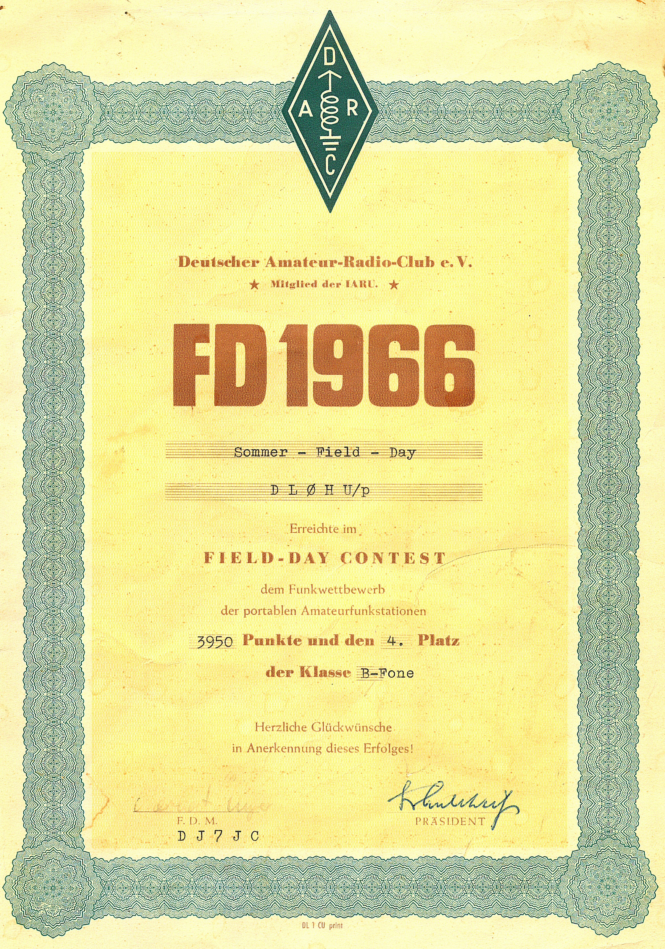 ![]() Fieldday Urkunde M04, 1966 / Bild: Archiv M04 |