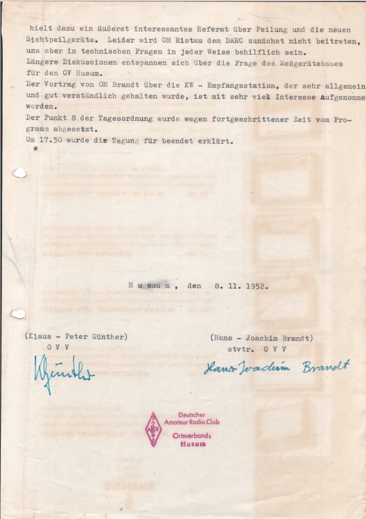 ![]() Bestätigung durch DARC Vorstand, 1952 / Bild: Archiv M04 |